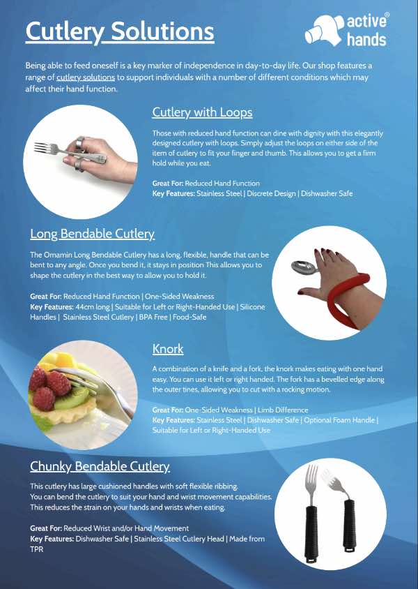 Our website now has a new ‘professionals’ section, full of information and resources to help you make the most of our gripping aids. Here, you’ll find product guides, including data sheets that walk you through the options we carry, where we have multiple options for one activity. For example, cutlery or scissor solutions. This way, you can read all the information we have on each solution, before choosing the right product for each client.